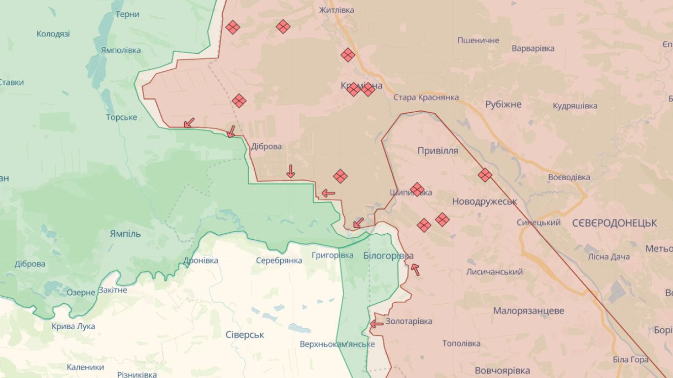 Карта бойових дій на Сватівському напрямку від Deepstate. Фото: скриншотКарта бойових дій на Сватівському напрямку від Deepstate. Фото: скриншот