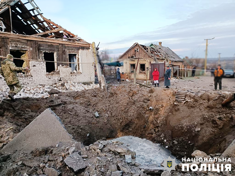 На одній із вулиць села внаслідок обстрілів було пошкоджено понад 10 приватних житлових будинків.