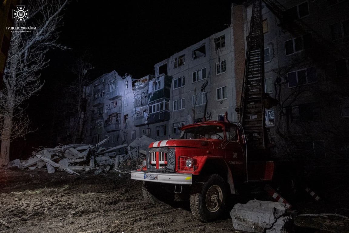 Аварійно-рятувальні роботи у Слов'янську після російського обстрілу. Фото: ДСНСРятувальники розбирають завали у Слов'янську. Фото: ДСНСРятувальники розгрібають завали у Слов'янську в пошуках людей. Фото: ДСНСЧастково зруйнований будинок у Слов'янську після російського обстрілу. Фото: ДСНСРятувальники біля частково зруйнованого 5-поверхового будинку в Слов'янську. Фото: ДСНС