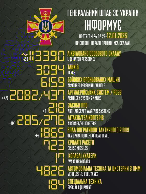 Кількість знищених за минулу добу російських окупантів становить понад 400 осіб. Крім того, загарбники продовжують втрачати військову техніку, зокрема артилерійські системи, засоби протиповітряної оборони та безпілотники.