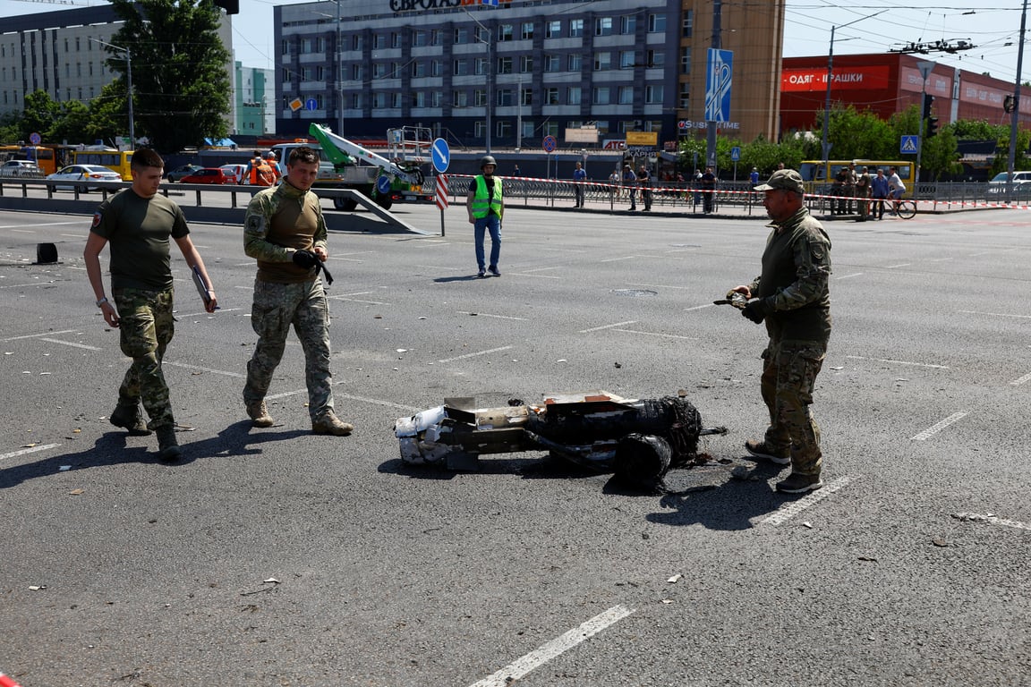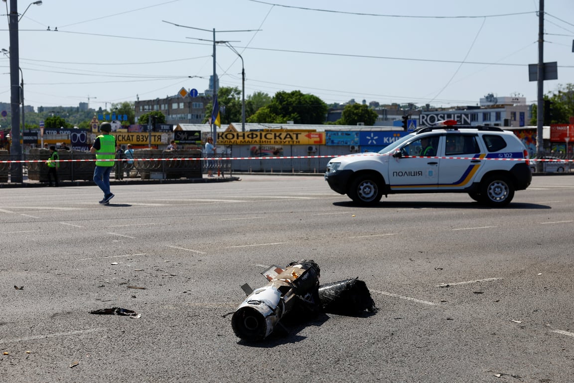 Збита російська ракета на Оболонському проспекті в Києві. Фото: REUTERS/Valentyn Ogirenko