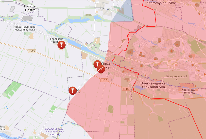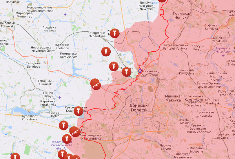 Карта боевых действий от Liveuamap. Фото: скриншот