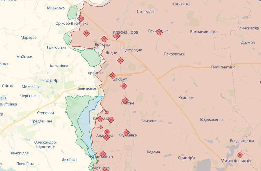 В Институте изучения войны (ISW) отмечают, что украинские войска провели контрнаступательные операции по меньшей мере на трех участках фронта и достигли ограниченных успехов. Российские источники утверждали, что украинские войска достигли ограниченных успехов к югу от Бахмута в районе Андреевки (10 км к югу от Бахмута) и пересекли Северский Донецкий канал в этом районе.