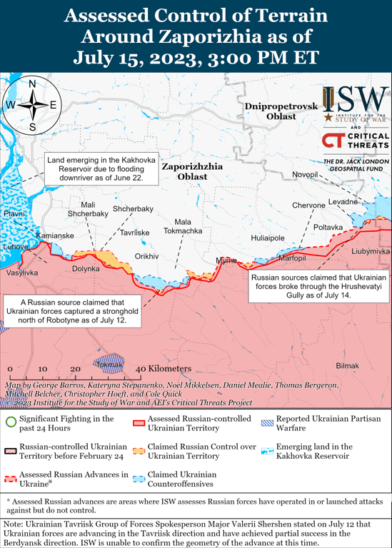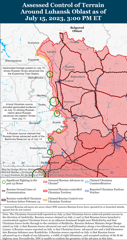 Онлайн-карты боевых действий в Украине на 16 июля: ISW