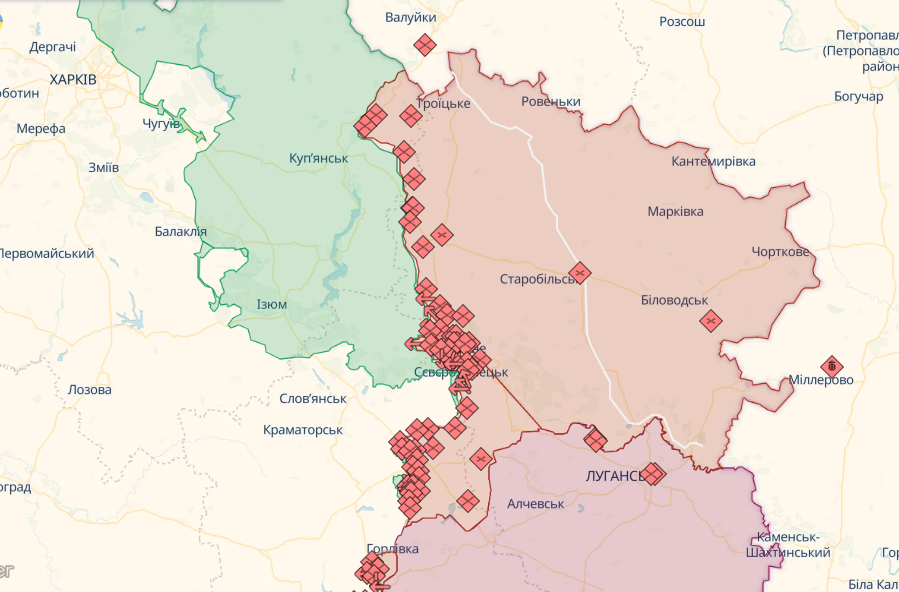 Онлайн-карты боевых действий в Украине на 16 июля: Liveuamap
