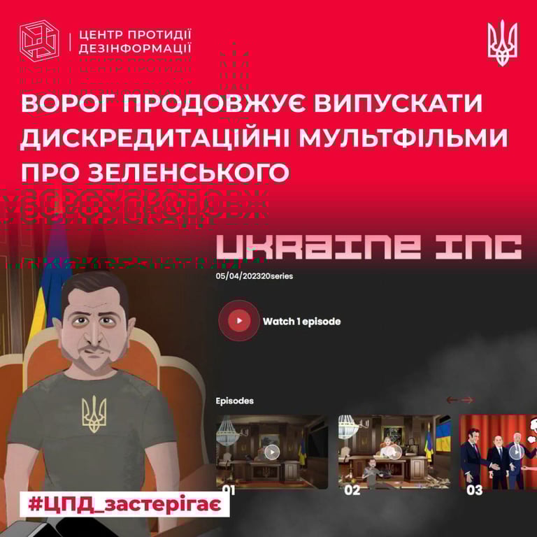 Российская пропаганда под именем французских аниматоров распространяет сетью третью серию провокационного мультсериала Ukraine Inc. о Владимире Зеленском. Там его изобразили "фюрером, отправляющим свой народ в мясорубку".