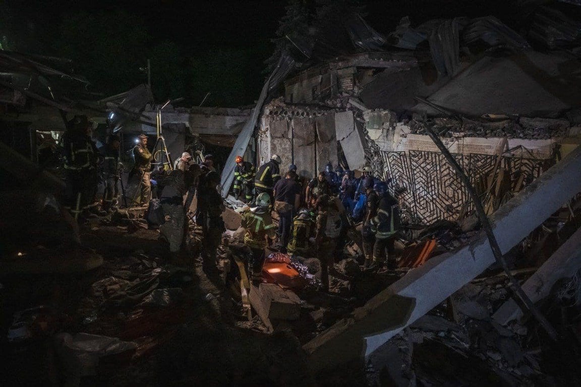 По информации ГСЧС, на месте ракетного удара в Краматорске продолжаются поисково-спасательные работы. Кроме того, ликвидирован пожар на площади 30 кв. м.