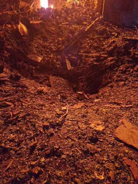 Мер міста Олександр Сенкевич також зазначив, що на одній із адрес від вибуху утворилась величезна вирва біля триповерхового житлового будинку.