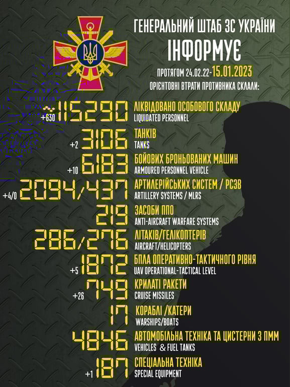За 14 січня українські захисники знищили на фронтах війни понад 600 російських окупантів.