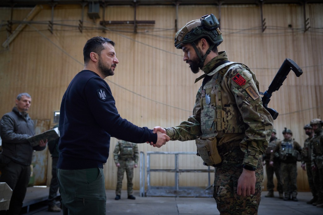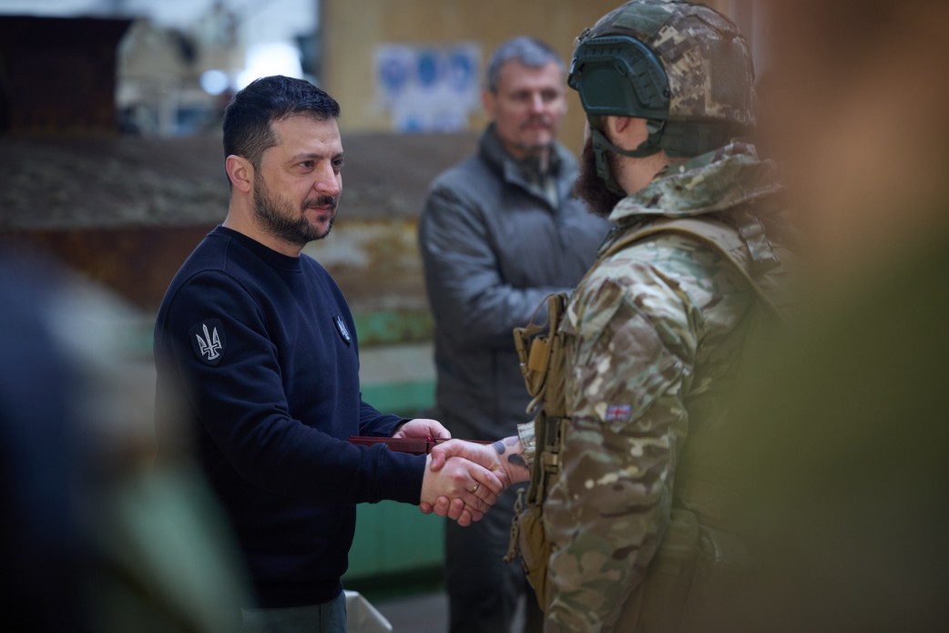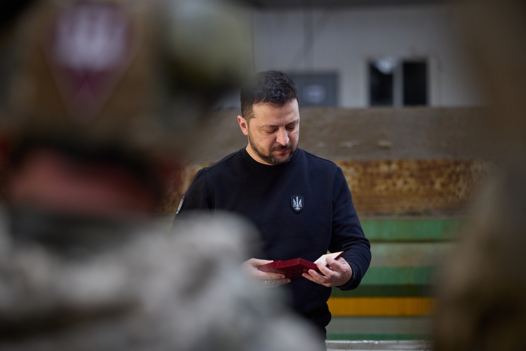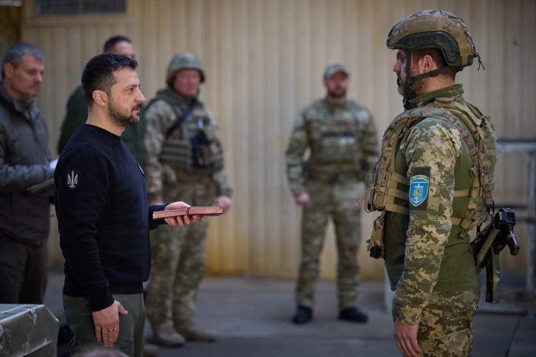 Володимир Зеленський нагороджує захисників України в Авдіївці. Фото: president.gov.ua